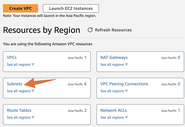 ไปที่ AWS VPC ที่หน้าจอแรก หรือ Dashboard เลือก Subnets