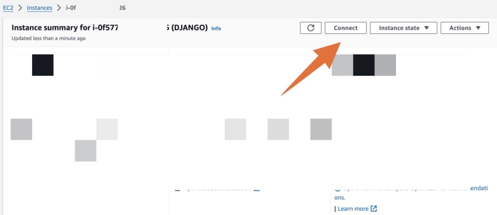 ไปที่ AWS EC2 กดปุ่ม Connect เพื่อเข้าไปที่ Terminal